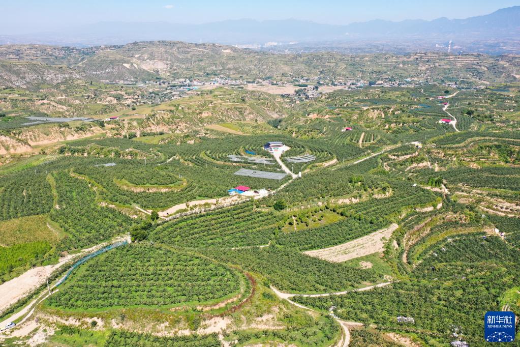 這是位于山西省汾西縣的一處梨園(2022年攝,無(wú)人機照片)。新華社發(fā)
