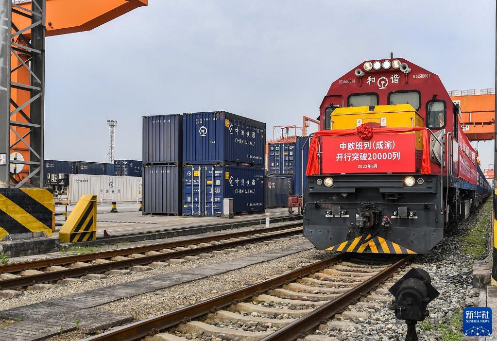 中歐班列(成渝)列車(chē)在成都國際鐵路港等待發(fā)車(chē)(2022年6月30日攝)。新華社記者 王曦 攝