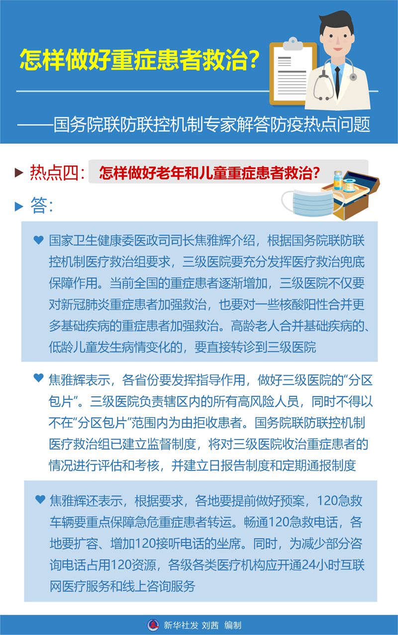 老年人出現哪些癥狀應及時(shí)就診?怎樣做好老年和兒童重癥患者的救治?圍繞公眾關(guān)注的熱點(diǎn)問(wèn)題,國務(wù)院聯(lián)防聯(lián)控機制組織專(zhuān)家作出解答。