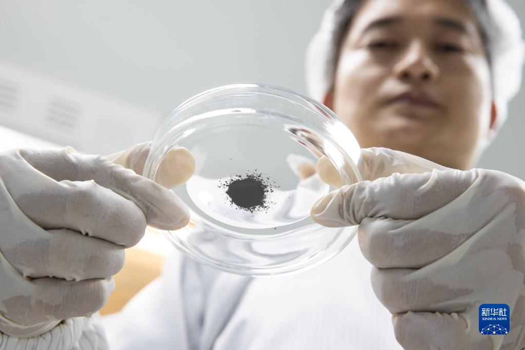 在中科院地質(zhì)與地球物理研究所月球樣品潔凈室,田恒次副研究員在處理月球樣品(2021年10月15日攝)。新華社記者 金立旺 攝