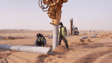 2022年9月,騰格里沙漠3GW新能源基地光伏復合項目開(kāi)工。這是國家第一條以開(kāi)發(fā)沙漠光伏大基地、輸送新能源為主的特高壓輸電通道——“寧電入湘”工程的重點(diǎn)配套項目。
