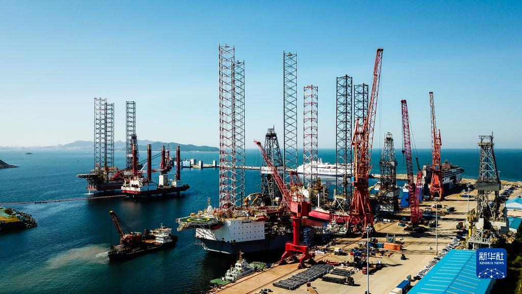 招商局金陵船舶(威海)有限公司造船泊位上忙碌生產(chǎn)的景象(2022年9月7日攝,無(wú)人機照片)。山東省威海經(jīng)濟技術(shù)開(kāi)發(fā)區目前已匯聚一批裝備項目,形成百億元海工裝備產(chǎn)業(yè)集群。新華社記者 郭緒雷 攝