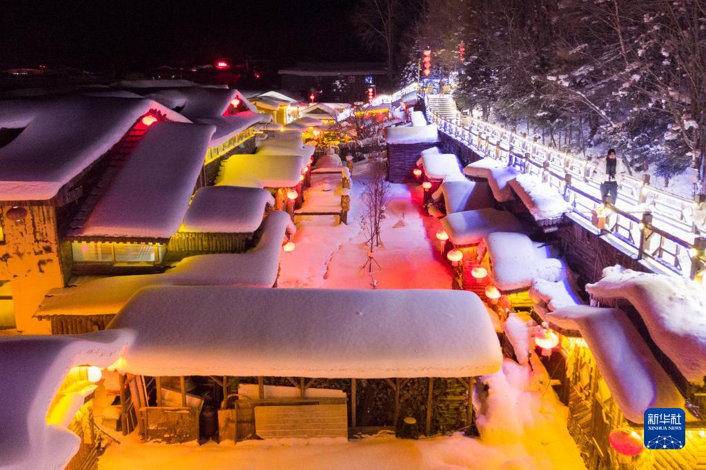 2022年12月14日拍攝的黑龍江雪鄉景區夜景(無(wú)人機照片)。新華社記者 謝劍飛 攝