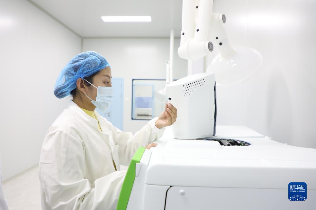 在黑龍江省哈爾濱市阿什河街道民合村,北大荒泰華有機食品股份有限公司的生產(chǎn)車(chē)間里,工作人員在進(jìn)行相關(guān)檢測(2022年11月18日攝)。新華社發(fā)(丁寧攝)