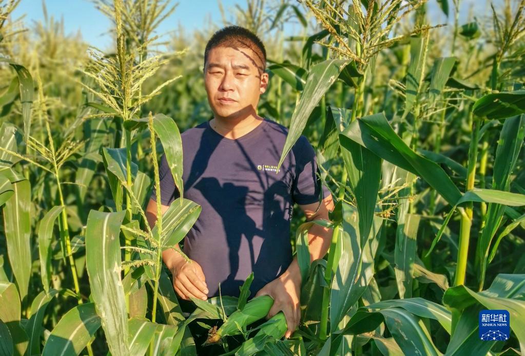 在吉林省梨樹(shù)縣北夏家村,聚豐種植農民專(zhuān)業(yè)合作社負責人邵亮亮檢查玉米長(cháng)勢(資料照片)。新華社發(fā)