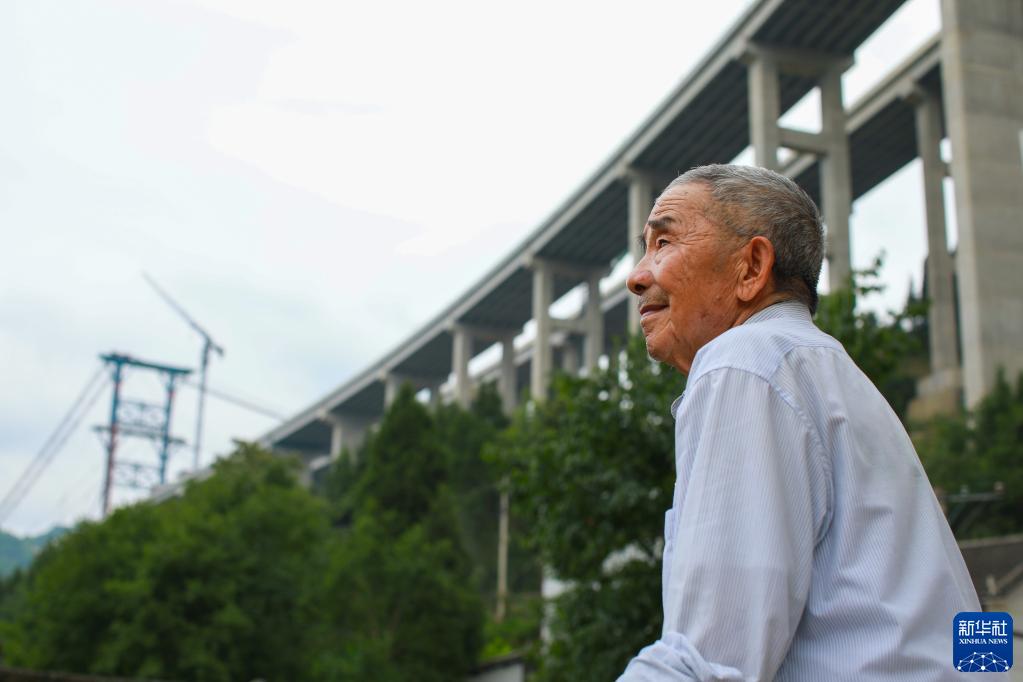 黃大發(fā)老人在村旁的大發(fā)渠特大橋下遠眺(2021年6月16日攝)。新華社記者 劉續 攝