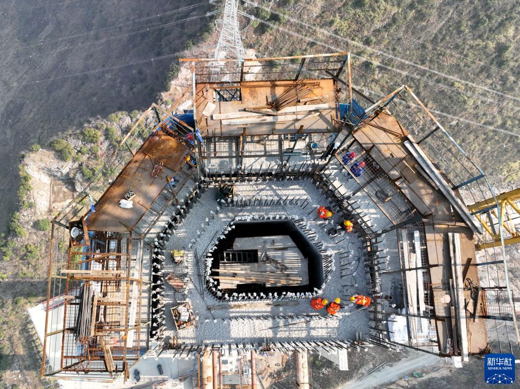 這是2月1日拍攝的花江峽谷大橋施工現場(chǎng)(無(wú)人機照片)。新華社記者 歐東衢 攝