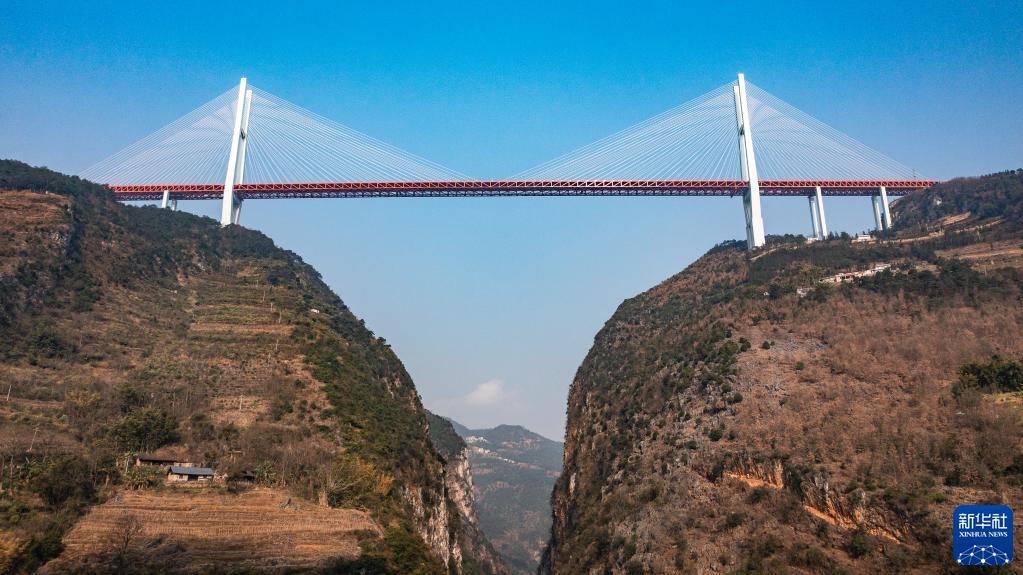 從天空俯瞰,北盤(pán)江湍急的水流把崇山峻嶺切割出一道深深的裂痕。為使兩岸相連,在此設計建造的大橋全長(cháng)2890米,主跨1420米,橋面距水面垂直距離625米。預計2025年建成通車(chē)后,將成為主橋跨徑和高度世界第一的山區橋梁。
