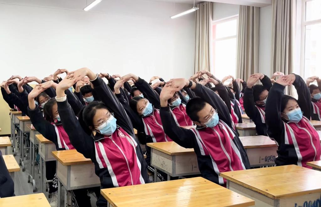 2月9日,西寧市第一中學(xué)初三學(xué)生在做心理操。新華社記者 張子琪 攝