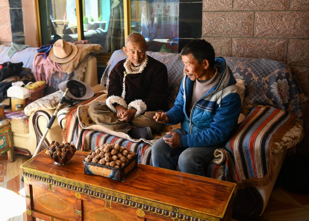 核桃是山南市加查縣拉崗村村民家里最常見(jiàn)的美味(2月1日攝)。新華社記者格桑邊覺(jué) 攝