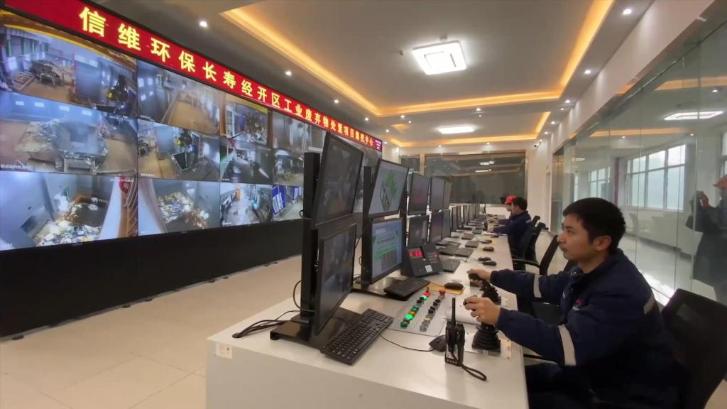 圖為中國石化集團重慶川維化工有限公司的工業(yè)廢棄物處置項目集控中心。(視頻截圖)