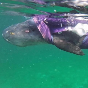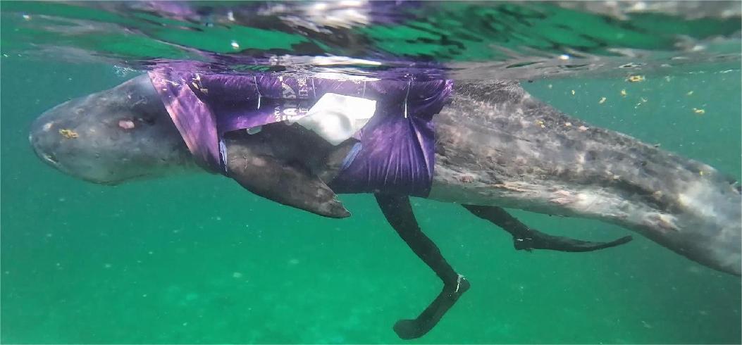 圖為被轉運至三亞海昌生物保育中心的“藍寶”。(受訪(fǎng)者供圖)