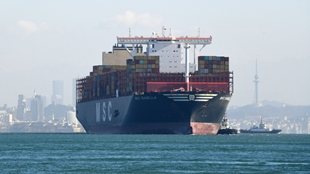 在遼寧省大連市遼寧港口集團大連港集裝箱碼頭,貨輪在裝卸集裝箱。新華社記者姚劍鋒 攝