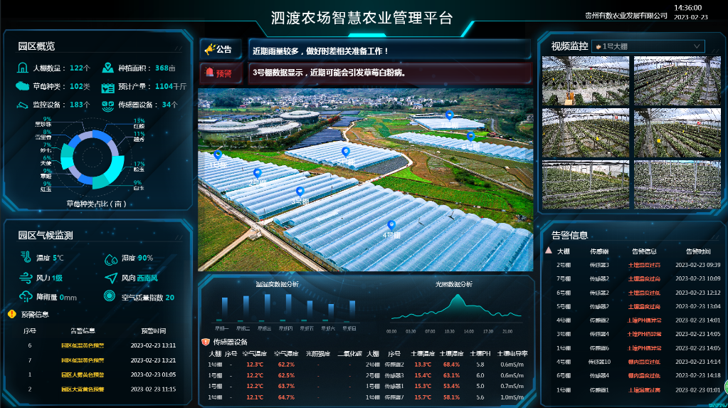走進(jìn)貴州省遵義市匯川區泗渡農場(chǎng)的辦公室,只見(jiàn)智慧農業(yè)管理平臺正在滾動(dòng)播報以上警示?!斑@些預警信息是大數據系統分析大棚里的濕度和溫度得出的結論?!便舳赊r場(chǎng)負責人徐緯說(shuō),每當系統發(fā)出預警,他們會(huì )馬上采取防治措施。