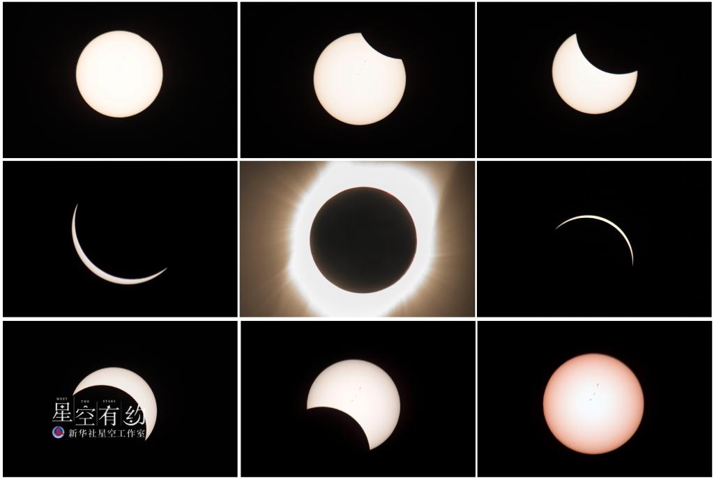 2017年8月21日在美國俄勒岡州塞勒姆拍攝的日全食過(guò)程的拼版照片。新華社記者 殷博古攝