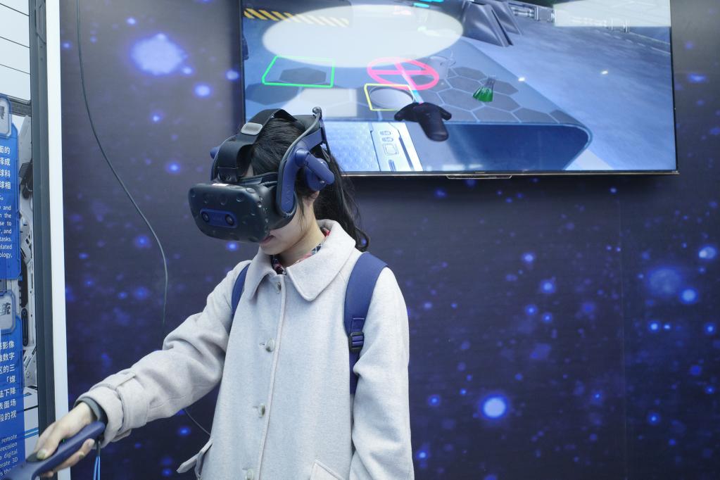 參展觀(guān)眾通過(guò)VR虛擬場(chǎng)景,體驗未來(lái)月球科研任務(wù)。 新華社記者欒若卉 攝