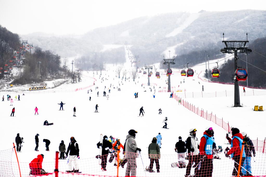 1月23日,滑雪愛(ài)好者在吉林市萬(wàn)科松花湖度假區滑雪。新華社記者 許暢 攝