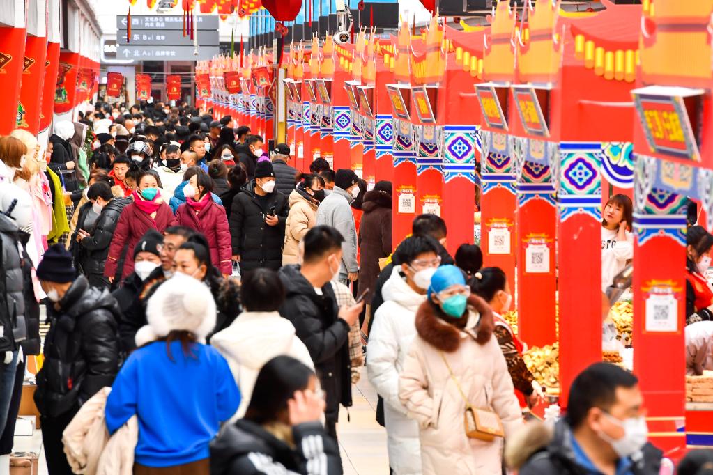 1月19日,市民在吉林長(cháng)春市中東大市場(chǎng)年貨大集選購年貨。新華社記者 許暢 攝