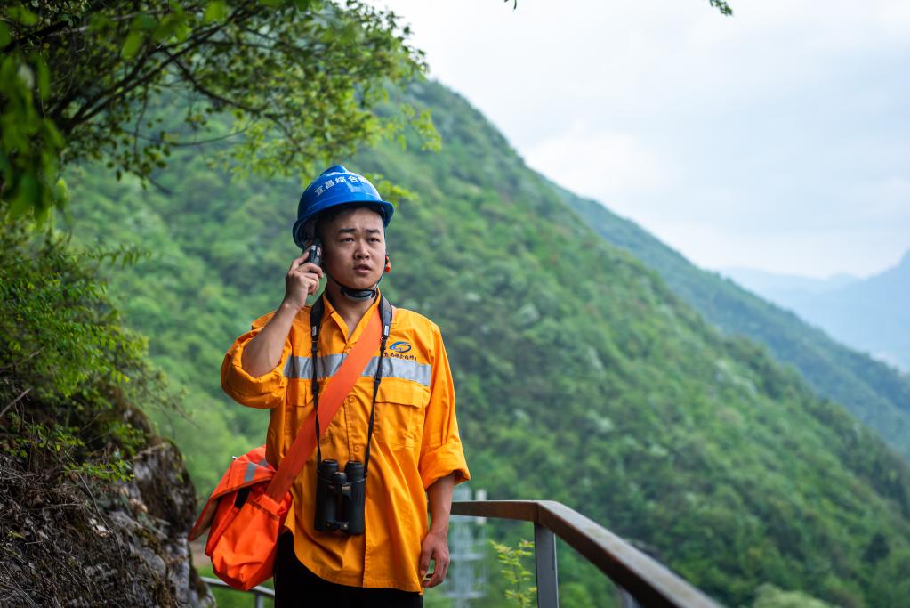 涂宸浩與即將經(jīng)過(guò)看守點(diǎn)的列車(chē)司機通話(huà)。新華社發(fā)(聞子豪 攝)