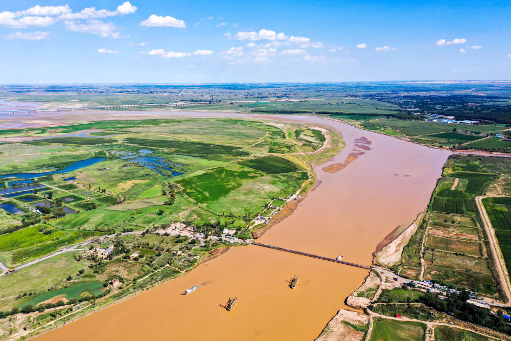 2022年8月15日在內蒙古鄂爾多斯市達拉特旗拍攝的黃河景觀(guān)(無(wú)人機照片)。新華社記者 連振 攝