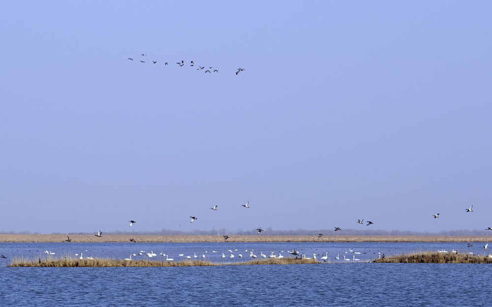 在達拉特旗黃河灘涂拍攝的候鳥(niǎo)(3月19日攝)。新華社記者 賈立君 攝