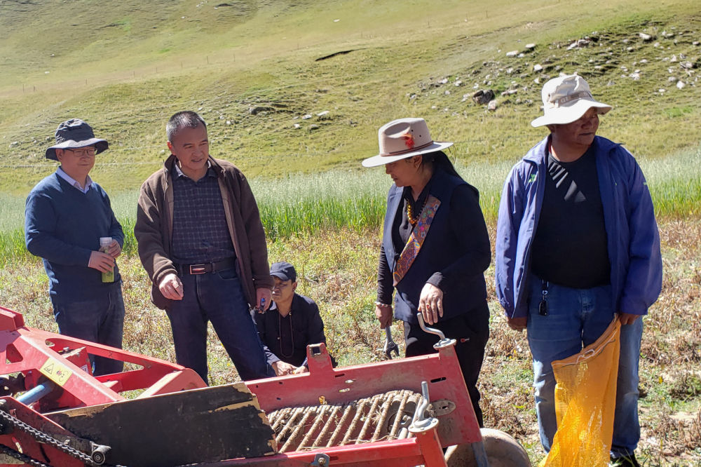 王艦(左二)為青海省果洛藏族自治州的一家馬鈴薯種植合作社指導工作。受訪(fǎng)者供圖