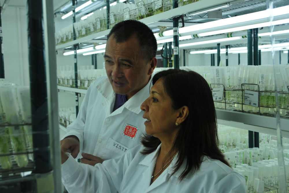 王艦(左一)在國際馬鈴薯中心(CIP)資源庫學(xué)習。受訪(fǎng)者供圖
