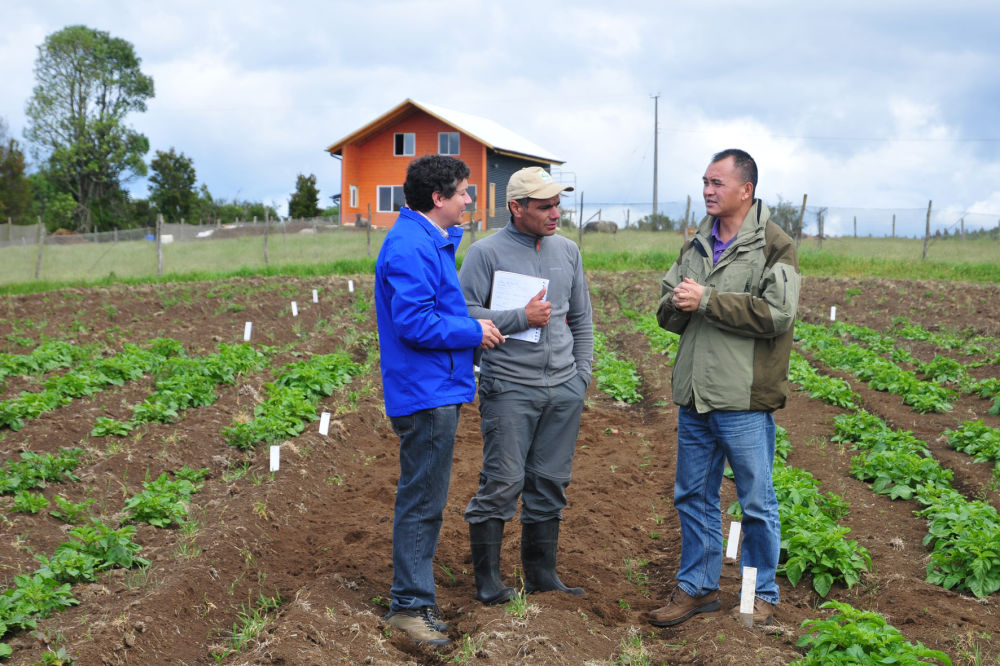 2016年,王艦(右一)在智利的一處馬鈴薯實(shí)驗站考察期間,與外國專(zhuān)家交流。受訪(fǎng)者供圖