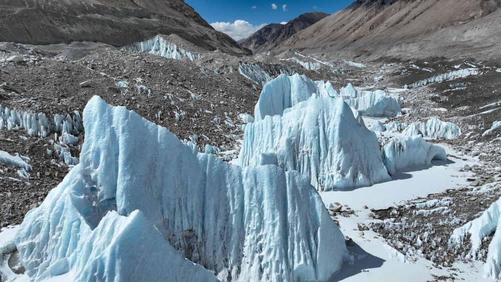 這是珠峰中絨布冰川(5月15日攝,無(wú)人機照片)。新華社記者 晉美多吉 攝
