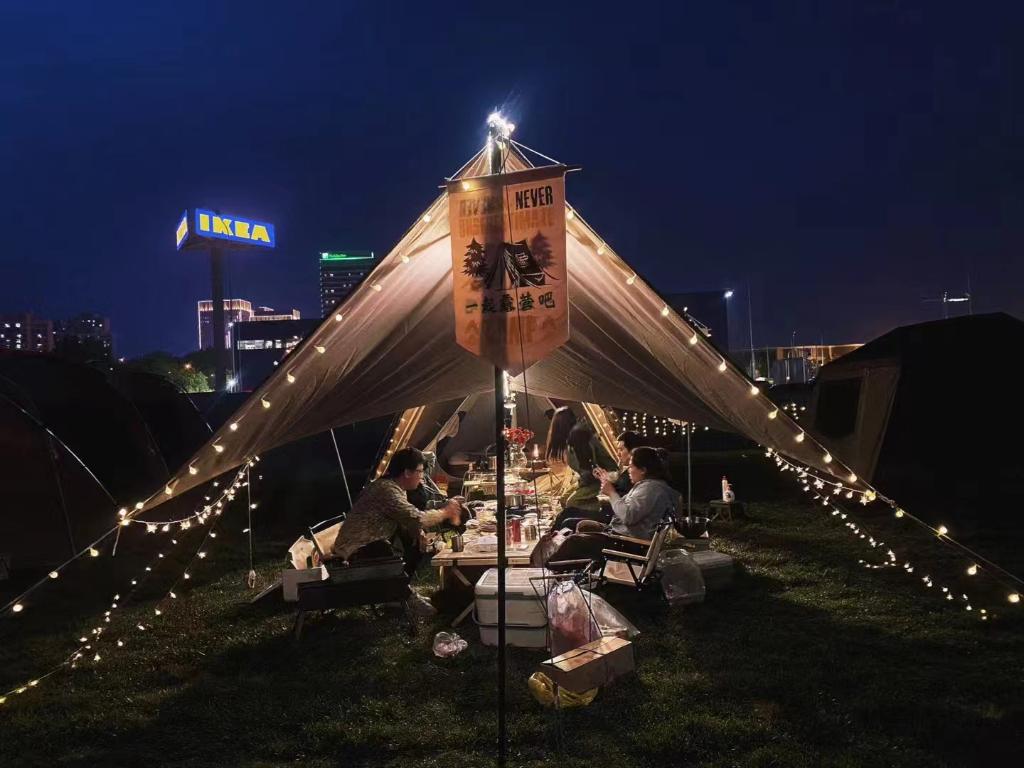“在城市中露營(yíng)是一種新趨勢。越來(lái)越多的市民愿意在身邊露營(yíng),進(jìn)行健康陽(yáng)光的戶(hù)外休閑游?!敝刑鞜摵哟宸寇?chē)露營(yíng)公園負責人陳彬說(shuō)。