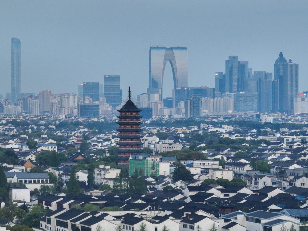 這是2023年4月10日拍攝的蘇州城區(無(wú)人機照片)。新華社記者 李博 攝