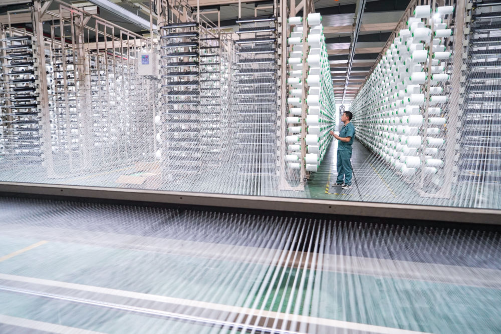 工人在位于蘇州市吳江區盛澤鎮的恒力集團博雅達紡織智能車(chē)間作業(yè)(2021年5月14日攝)。新華社記者 李博 攝