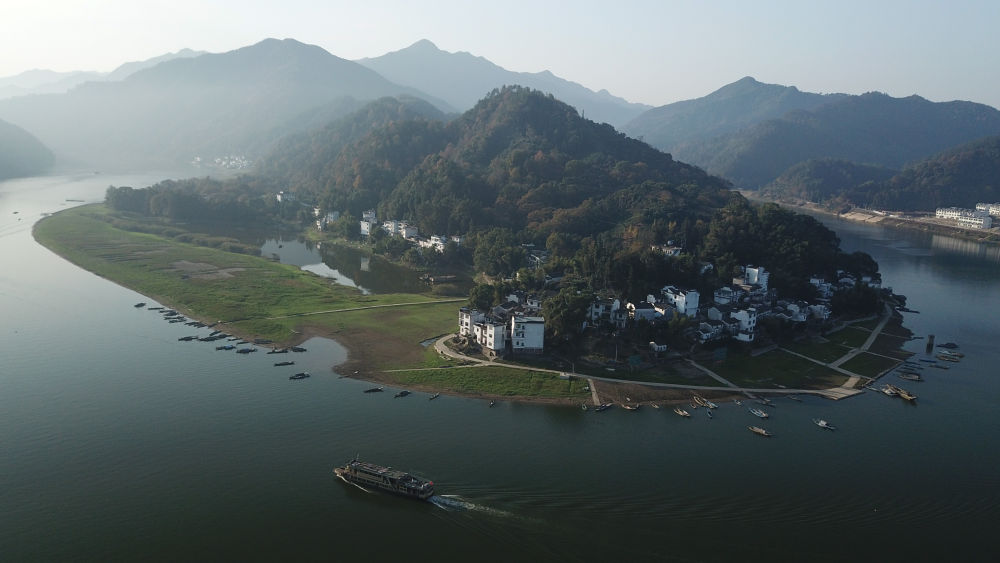 這是2019年11月16日拍攝的位于安徽的新安江山水畫(huà)廊(無(wú)人機照片)。新華社記者 張端 攝