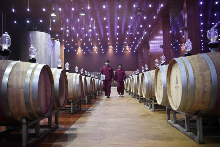 風(fēng)從賀蘭山深處吹來(lái),拂過(guò)山腳下一眼難望到頭的葡萄園。一座占地面積達5000平方米的酒窖里,自動(dòng)化設備保持四季恒溫恒濕,2000個(gè)橡木桶鱗次櫛比,國際葡萄酒大賽獲獎證書(shū)一個(gè)挨著(zhù)一個(gè),擺滿(mǎn)了十幾米長(cháng)的陳列架。