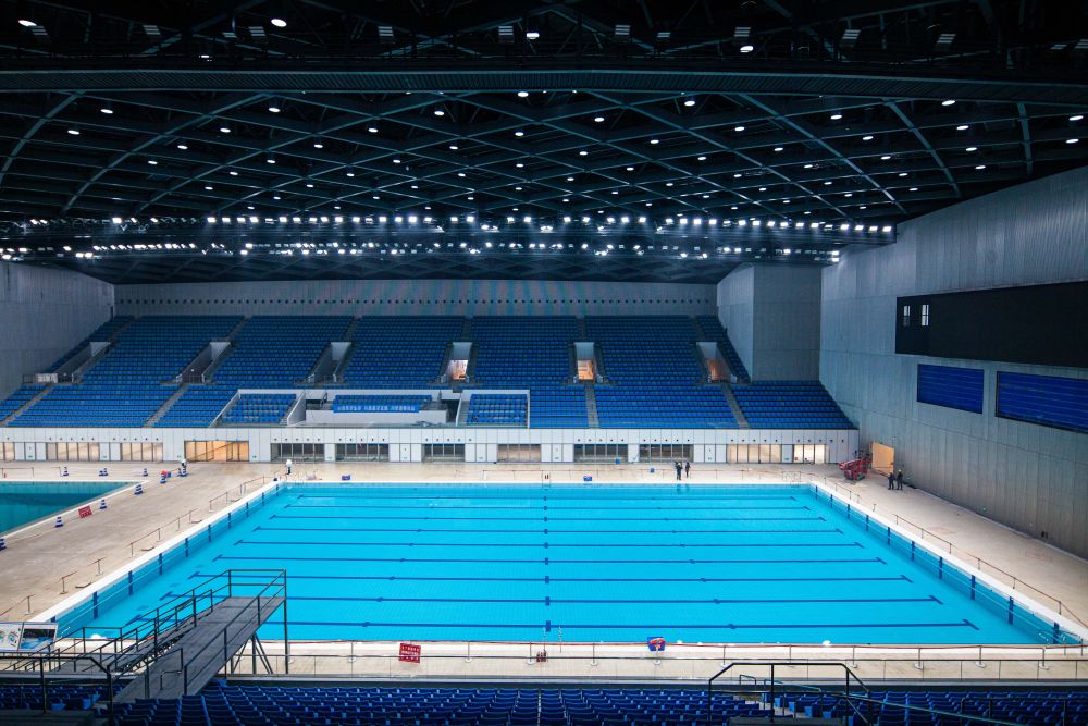 杭州奧體中心游泳館可容納觀(guān)眾6000人,設有比賽池、跳水池、熱身池等五個(gè)水池,將舉辦杭州亞運會(huì )游泳、跳水和花樣游泳三項比賽,決出53枚金牌,是杭州亞運會(huì )產(chǎn)生金牌最多的場(chǎng)館。