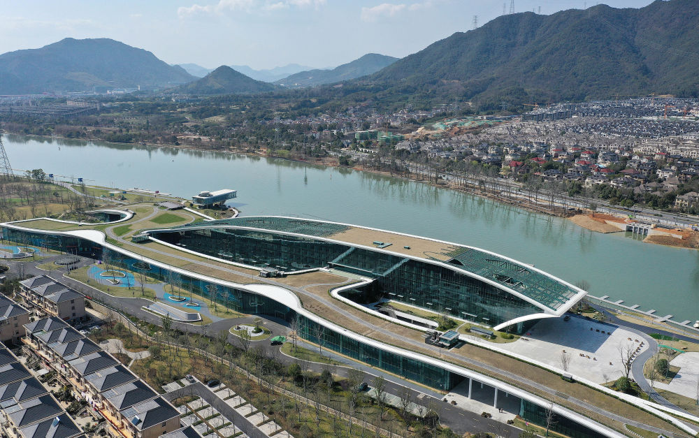 2022年3月11日拍攝的富陽(yáng)水上運動(dòng)中心(無(wú)人機照片)。新華社記者 徐昱 攝