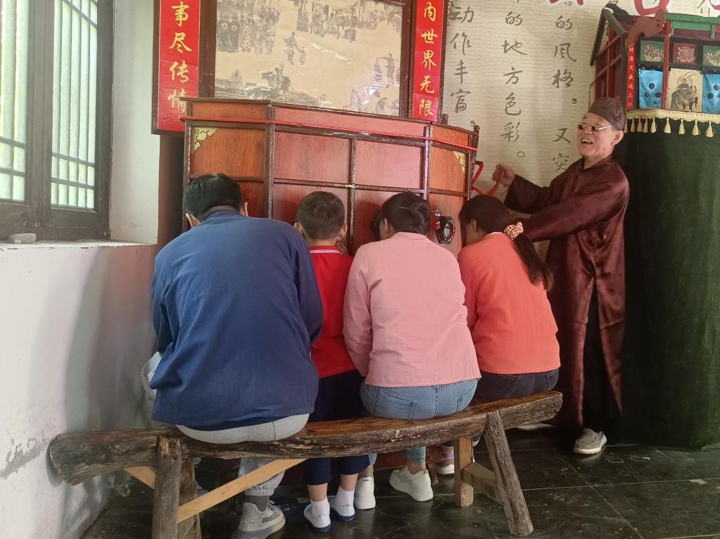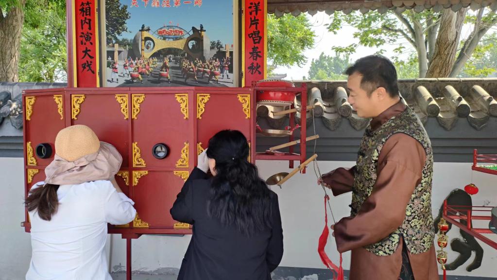 非遺傳承人溫俊來(lái)在為觀(guān)眾表演拉洋片。新華社記者馮維健 攝