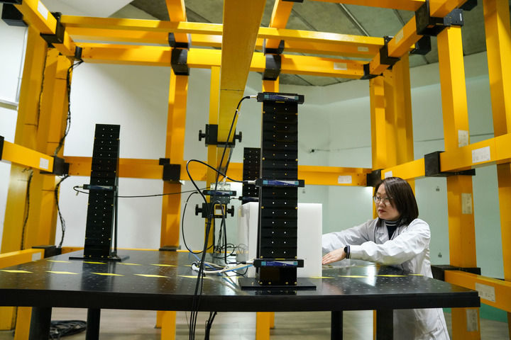 哈爾濱工業(yè)大學(xué)空間環(huán)境地面模擬裝置科研人員展示空間磁環(huán)境模擬與研究系統(4月6日攝)。新華社記者 王松 攝