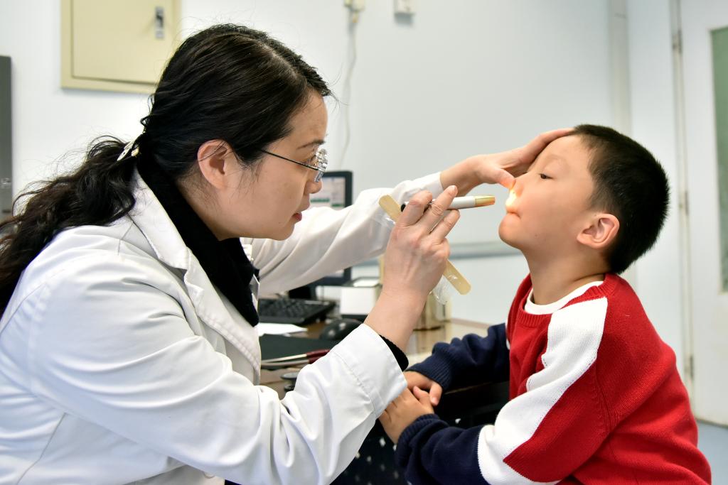 國家兒童醫學(xué)中心、北京兒童醫院過(guò)敏反應科主任向莉在為患兒做檢查。(受訪(fǎng)者供圖)