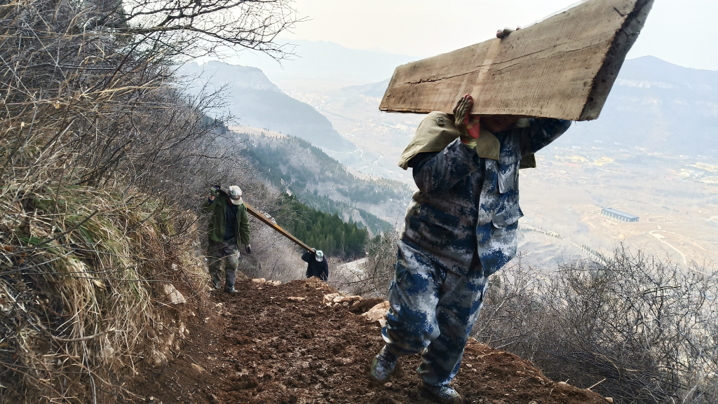 村干部們的這股干勁,很快就傳到了村民的耳中,上山參與建設的村民越來(lái)越多。你焊接、我扛料、他鋪板,大家就地取材、摳石鑿坡,吃在山上、干在山上,短短半年就在近乎垂直的懸崖上架起了登山云梯步道,在村里文王寨焊接起了489級臺階的“天梯”。
