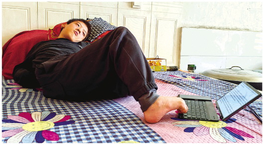 窯洞炕頭上那臺老式電視機,也拓展了少杰的想象力。他通過(guò)看科普、手工類(lèi)節目,學(xué)會(huì )“用腳折出各種花樣的紙飛機”,“用小磁鐵和廢手表做指南針”;看到一位腦癱男孩用嘴叼著(zhù)木棍在電腦上打字創(chuàng )業(yè),他振作起來(lái),找到破舊的語(yǔ)文課本自學(xué)拼音,練習用腳打字,最快時(shí)一個(gè)小時(shí)能在手機上敲出一千多字。