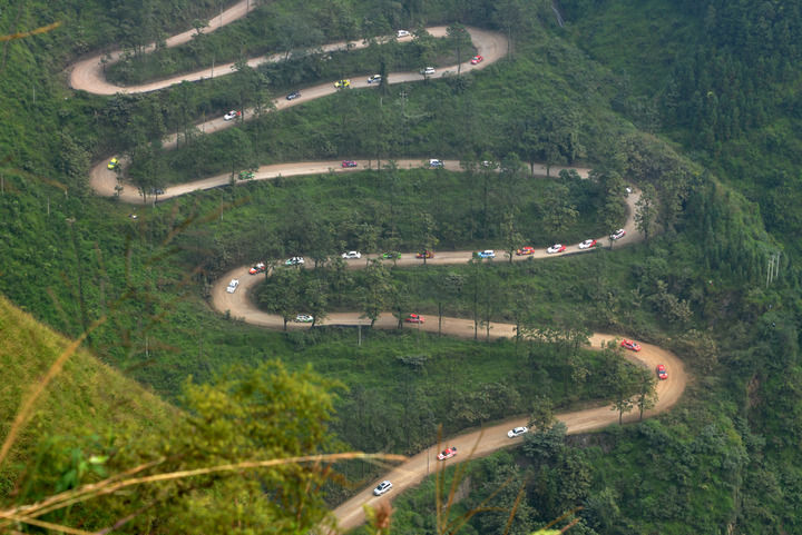 賽車(chē)集結在貴州省晴隆縣“二十四道拐”(資料照片)。新華社發(fā)(陳亞林 攝)
