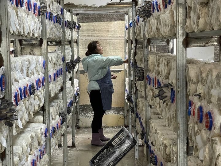 3月29日,貴州省晴隆縣騰龍街道村民在采摘食用菌。新華社記者 駱飛 攝