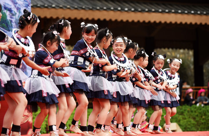 孩子們在貴州省晴隆縣阿妹戚托小鎮參加文藝演出(2019年6月6日攝)。新華社記者 楊文斌 攝
