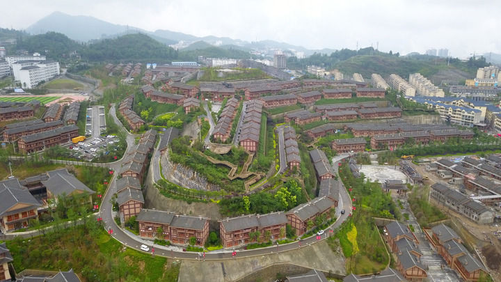 這是2019年6月6日拍攝的貴州省晴隆縣阿妹戚托小鎮(無(wú)人機照片)。新華社記者 楊文斌 攝