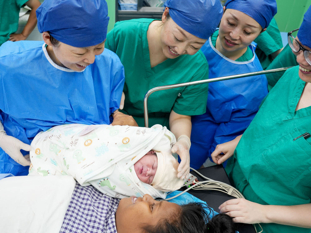 中國海軍“和平方舟”號醫院船在基里巴斯為29歲的塔拉瓦居民德阿瑞接生了一名“和平寶寶”(2023年7月16日攝)。新華社發(fā)(劉偉 攝)