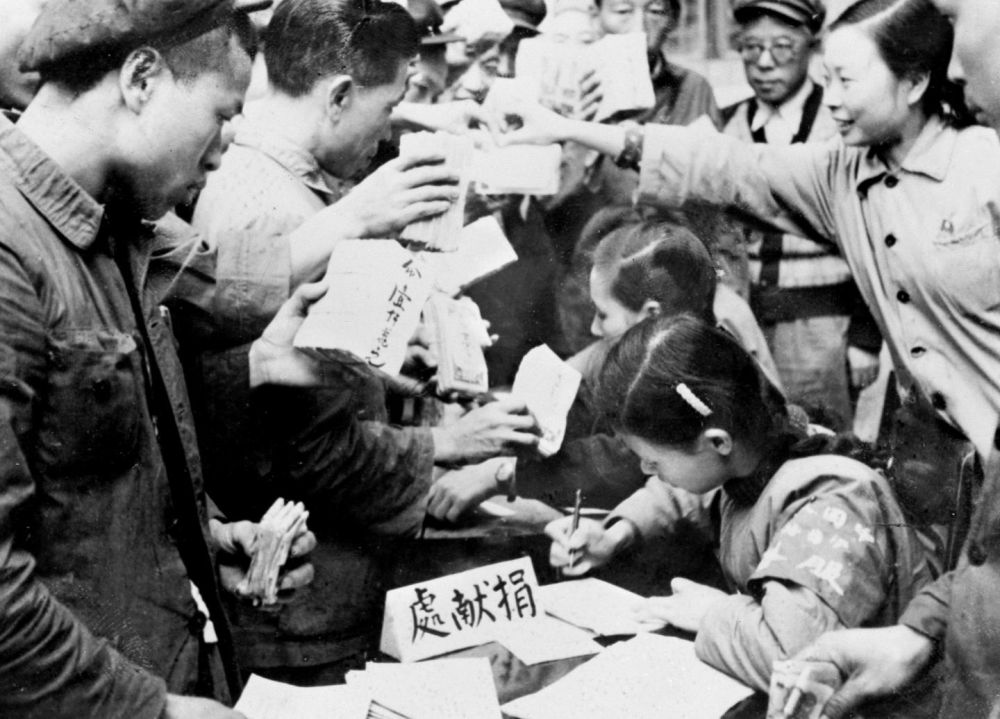 ——知識分子為支援前線(xiàn)的愛(ài)國事業(yè)鼓與呼,醫務(wù)工作者組織大批醫療隊奔赴前線(xiàn),“為最可愛(ài)的人購買(mǎi)飛機大炮”的捐款熱潮席卷了每一個(gè)社會(huì )層面、每一個(gè)社會(huì )角落……