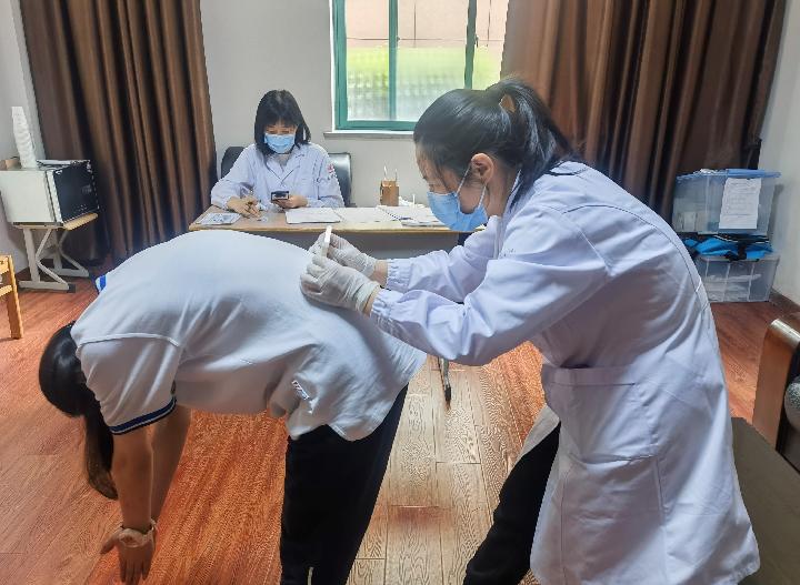 杭州市富陽(yáng)區學(xué)生脊柱健康普篩中,一名醫生為學(xué)生做檢查。(受訪(fǎng)者供圖)