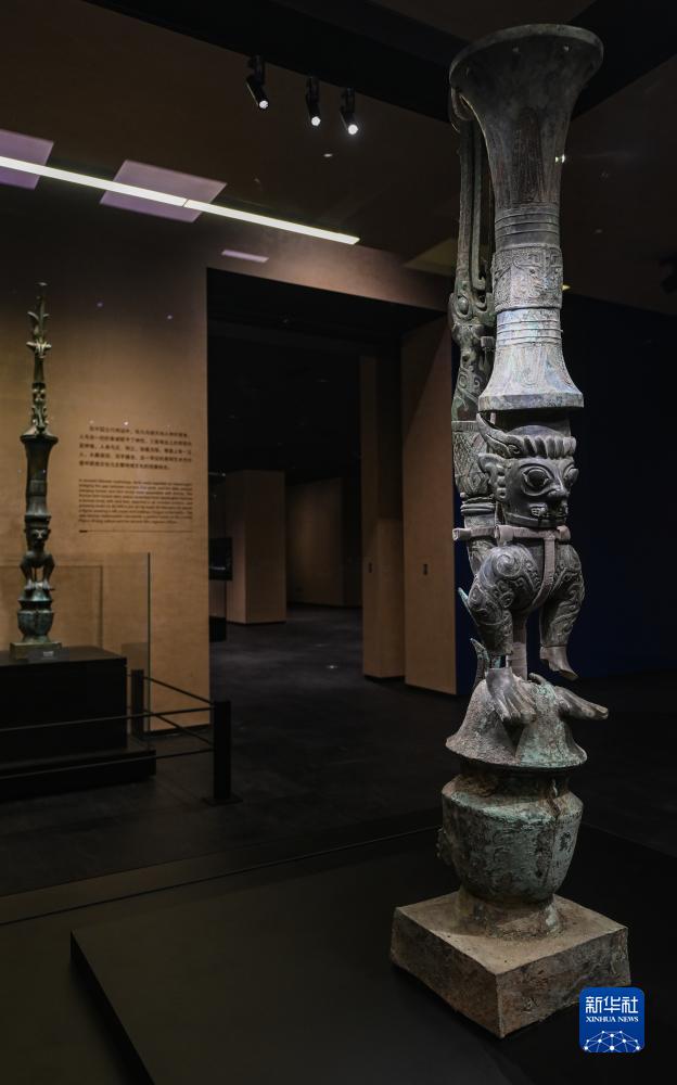 這是7月21日在三星堆博物館新館拍攝的青銅鳥(niǎo)足神像(研究性復原)。新華社記者 童芳 攝