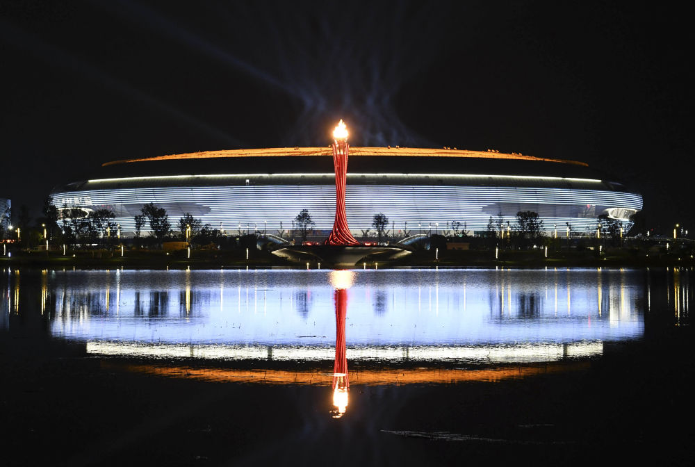 這是2023年7月28日拍攝的第31屆世界大學(xué)生夏季運動(dòng)會(huì )主火炬。新華社記者 張端 攝